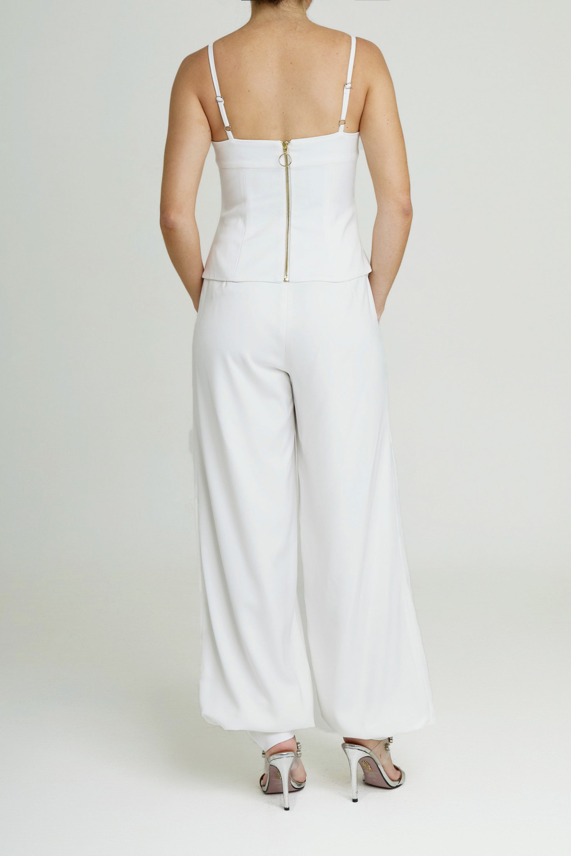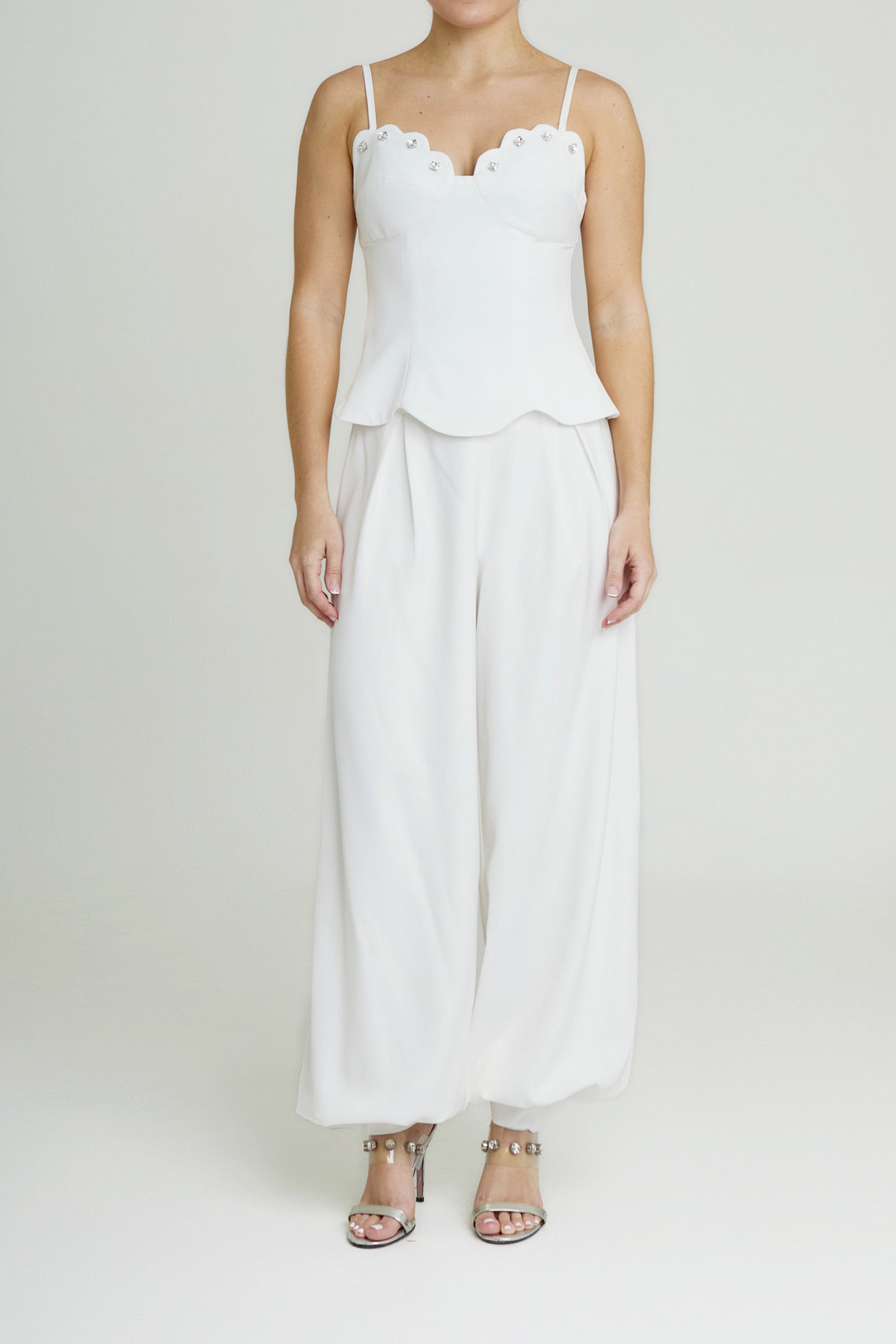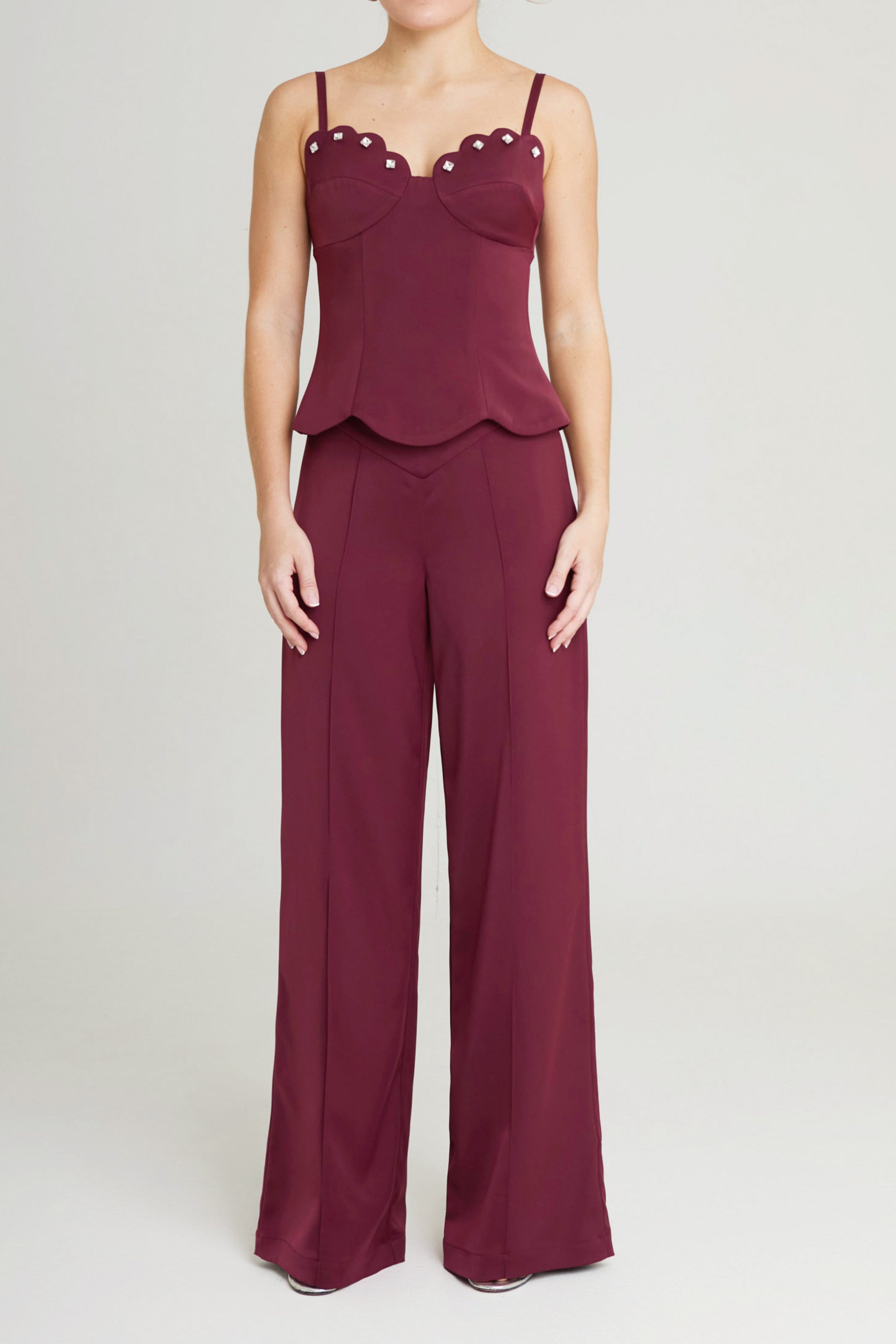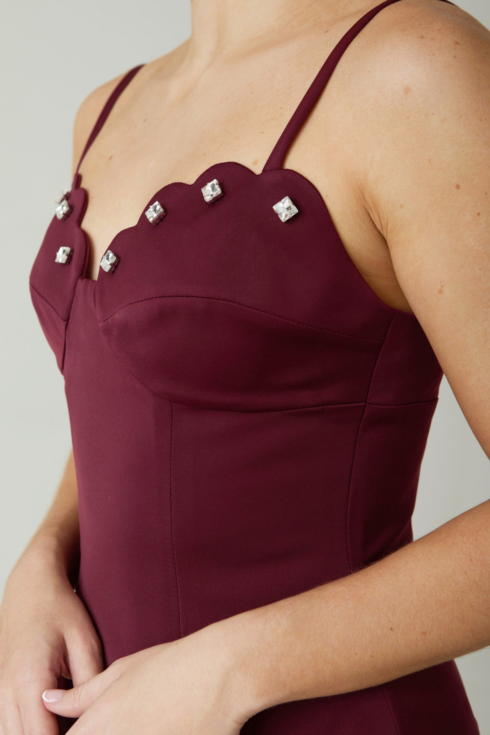 Top tipo corsé, con escote corazón decorado con apliques brillantes y una silueta estructurada que entalla la cintura.